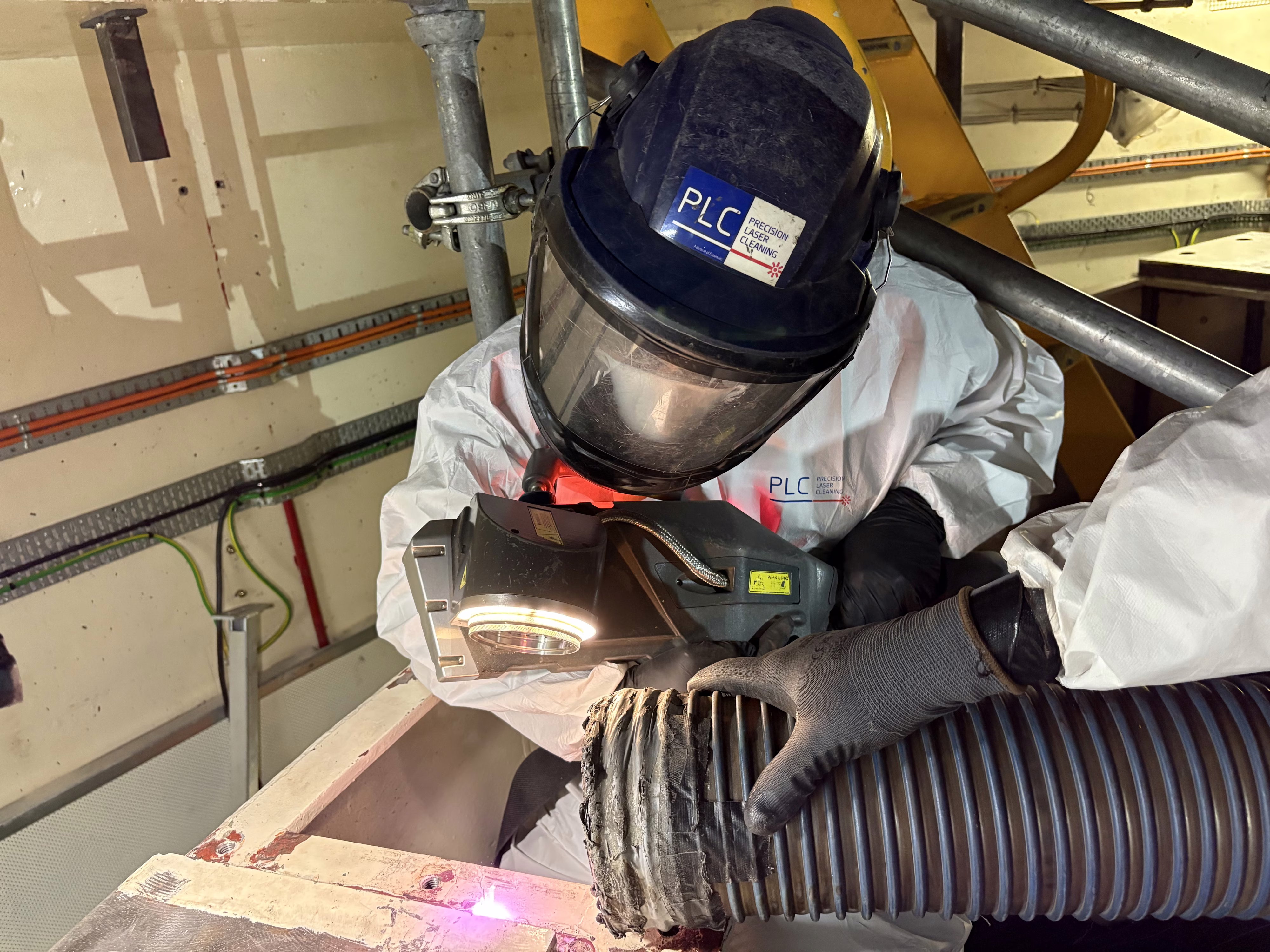 Heat induction weakens coatings without mechanical impact, reducing the generation of airborne particulates. Laser finishing allows for highly controlled, localised removal with integrated extraction systems capturing contaminants at the source.